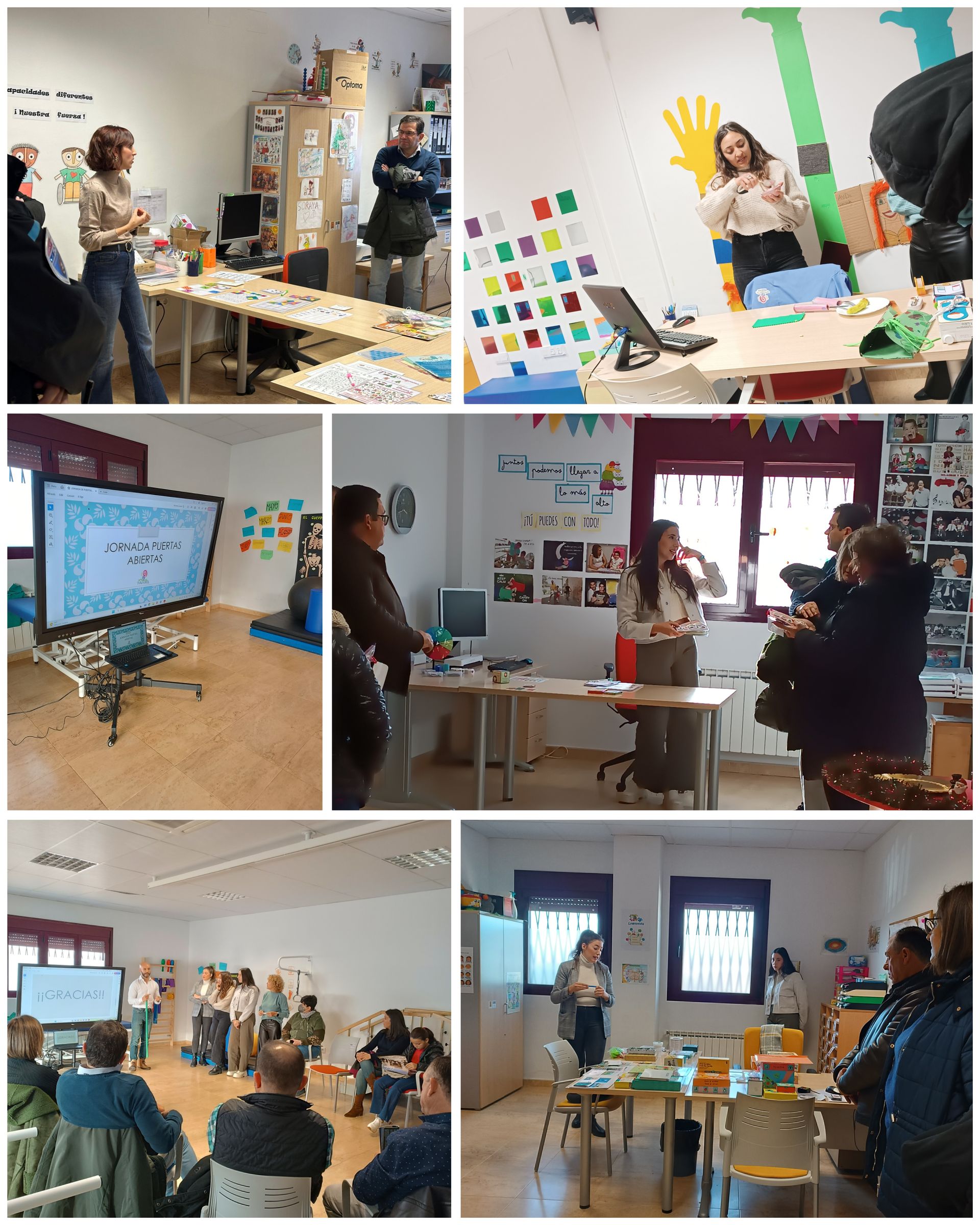 JORNADA DE PUERTAS ABIERTAS PARA EMPRESAS, ORGANISMOS Y PARTICULARES QUE HAN COLABORADO CON LA ENTIDAD El pasado sábado 14 de diciembre, Padisbol recibió a representantes de varias empresas, organismos públicos y particulares, que a lo largo de este año han colaborado con la entidad a través de donaciones para el Servicio Terapéutico que ofrecemos para las Personas con Discapacidad en nuestra localidad. La presidenta actual de PADISBOL, María José Fernández, acompañada por otros integrantes de la Junta Directiva y por los/as cinco profesionales del servicio, explicaron a los asistentes el funcionamiento del mismo, las ayudas que reciben, los logros conseguidos en estos años de andadura y, cómo se trabaja en cada tratamiento y con qué recursos. El fin de esta Jornada no era otro que agradecer inmensamente la colaboración y el apoyo que han prestado a la entidad , así como, exponer el trabajo diario del servicio para que sean conocedores de primera mano, de a dónde se destina el dinero que donan y para qué. Fue una jornada muy amena en la que todos/as los asistentes se interesaron por el trabajo que nuestros/as profesionales realizan, la metodología, los recursos que utilizan en cada tratamiento terapéutico, el perfil de los/as usuarias/as y las necesidades existentes. ¡Muchísimas gracias a todos/as los asistentes! Para Padisbol era muy importante mostrar su trabajo diario y agradecer tanto apoyo.